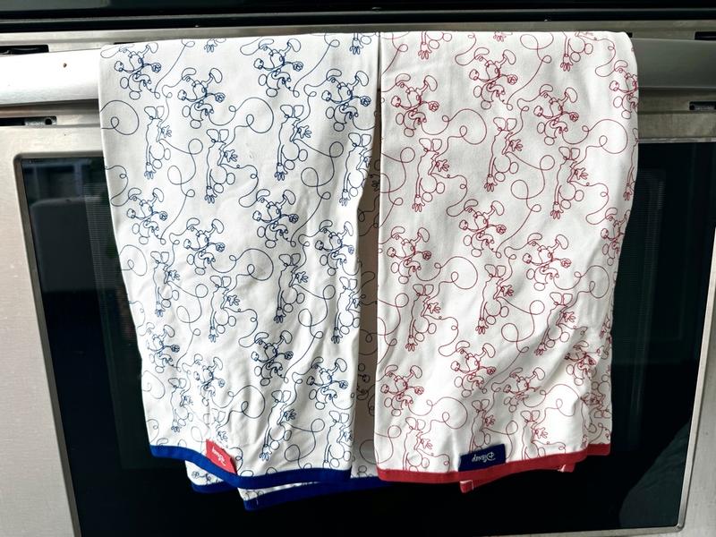 The absolute cutest towels! The design is so simple yet eye-catching. My favorite is the blue one because the shade is so nice. This town is BIG!! Super wide and definitely picks up a lot of stuff in just one wipe. It kind of hurts using these towels since they’re white so they get dirty easily so not sure how long they will last me. But they clean well, do it’s job of cleaning my kitchen area. I use the red one as a hand towel and it works great.