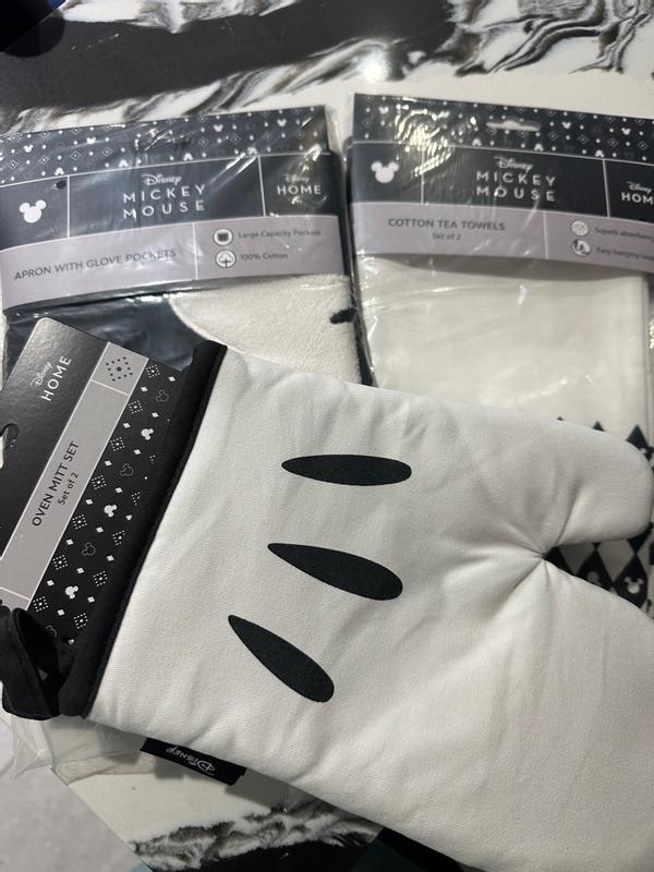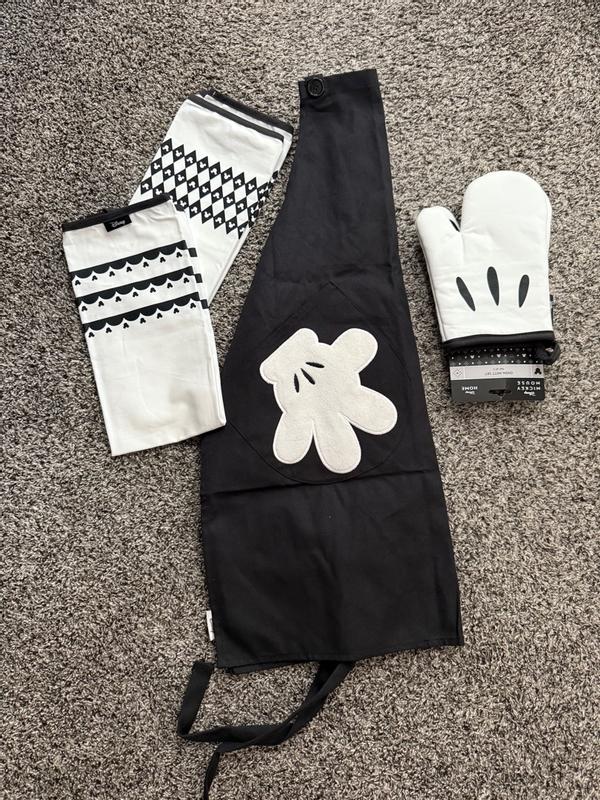 Love this monochrome Disney set! You can tell every piece is high quality just by feeling them. The terry inside of the mitts is so soft. The buttons on the apron are functional and super cute with the Mickey theme, not to mention the large angled pockets. And the towels are huge-which any chef will agree is a great bonus!