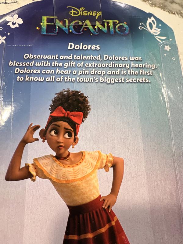 This Disney Encanto doll of Dolores is a fantastic addition to any Encanto fan! She is beautifully made, has adorable features such as hand over her ear, removable sandals headband, and beautiful dark curly hair is soft. My toddler loves her doll and plays and takes her everywhere. Overall, a beautiful Encanto doll for any fan!