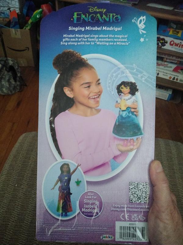 The Mirabel doll is so cute, great quality and is perfect for my niece who loves the character. The doll sings waiting on a miracle when you push the chest, the sound is clear. A really good doll. My niece carries it with her everyday.