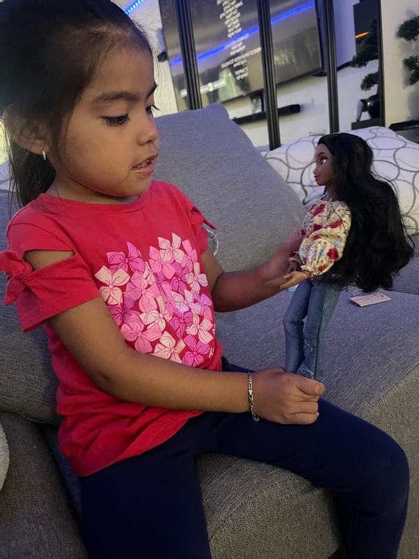 First of all my daughter loves this doll from the way it was so easy for her to open and it’s one of her factoids to lay with. The design is beautiful since we have a multi racial daughter and this doll looks just like her. It’s extremely durable and the material can handle a baby pulling on it. Love this doll!!