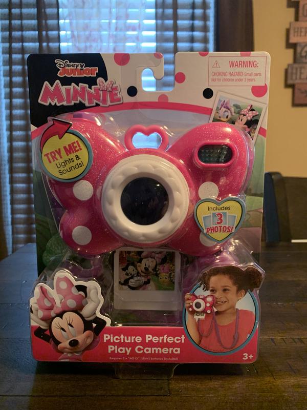 My daughter and son both love this camera. If promotes their imaginary play and occupies their time. They enjoy “taking pictures of each other and their dad and I. It even has several pictures that fit into the back that pop out when the picture button is pressed. The camera even makes a clicking sound like a real camera when pressed. Overall we are very pleased with this Minnie Mouse camera.