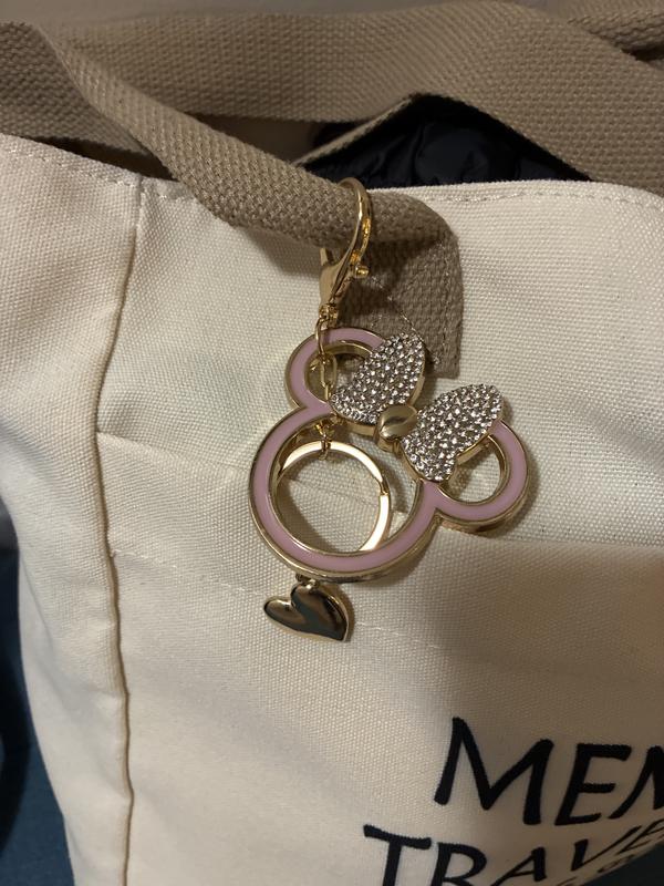 DisneyMinnie Mouse Outline Keychain with Crystal Bow and Heart Charm