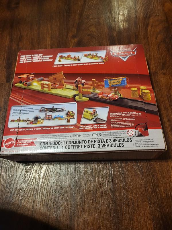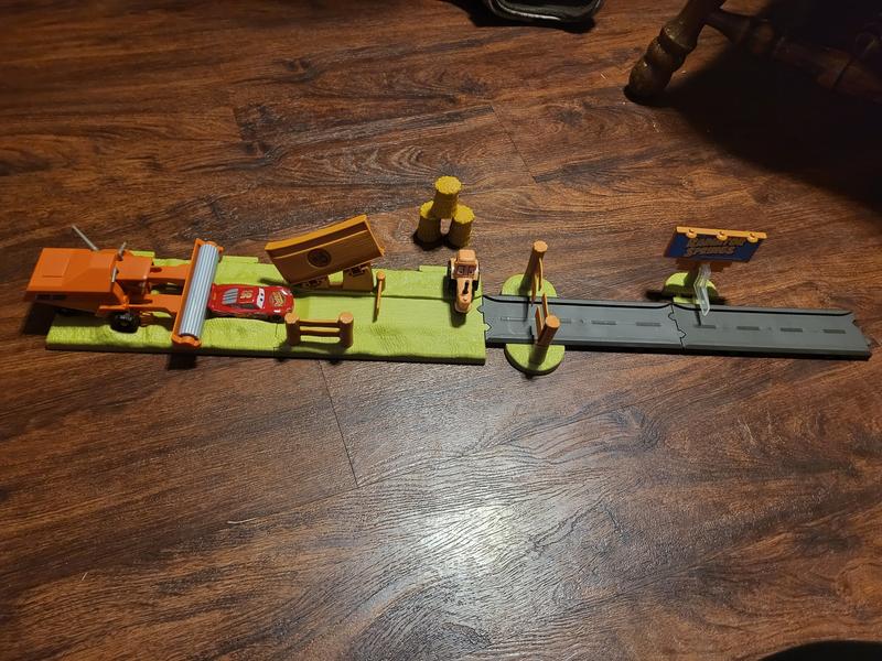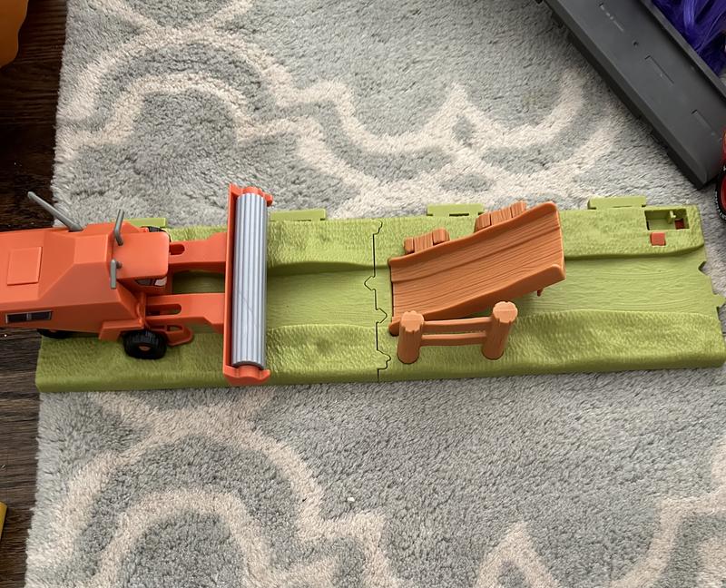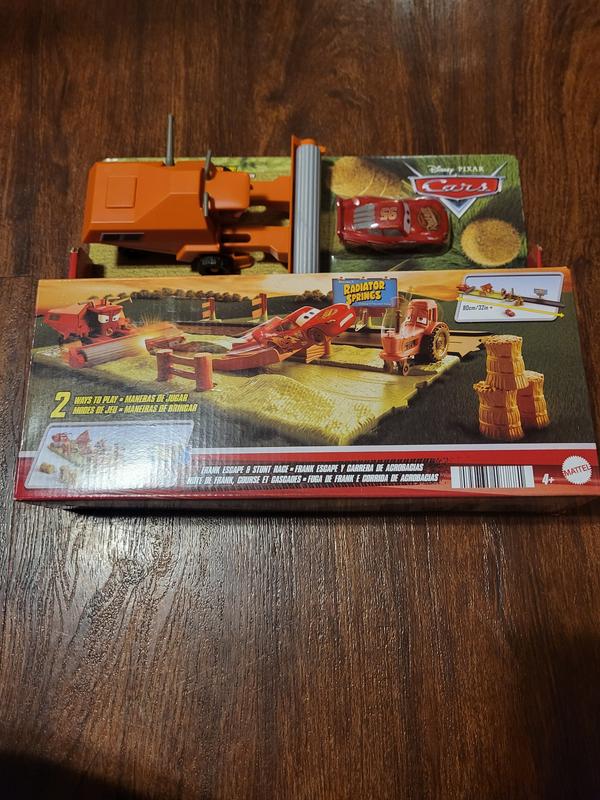 The Cars Frank Escape & Stunt Race is so much fun! The play set comes with 3 vehicles (that detach and can be played with individually) and car track. My 4 year old loved as soon as he was able to play with it! Frank the Combine Tractor pushes Lightning McQueen down the track where he knocks things over and makes the sign spin. There is an attachment that also makes Lightning McQueen jump! This has provided hours of fun for my child and surprisingly he hasn’t grown tired of it and still goes to it for play. It’s a fun toy and would definitely recommend!