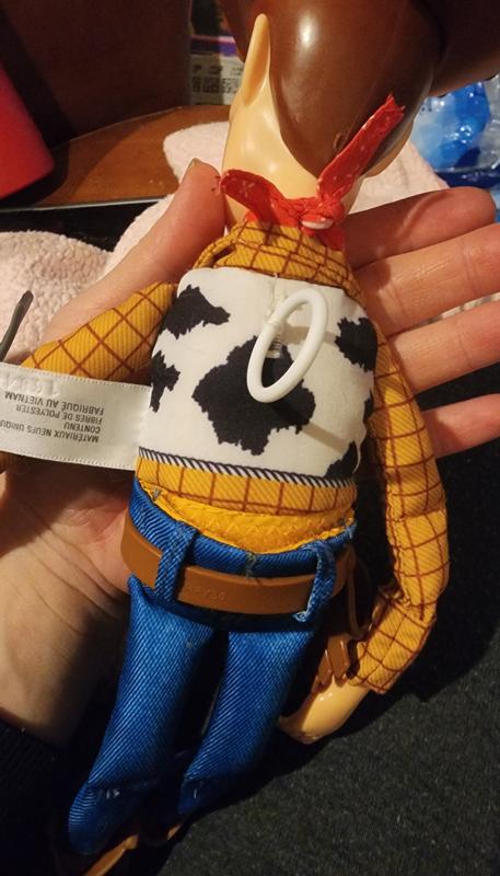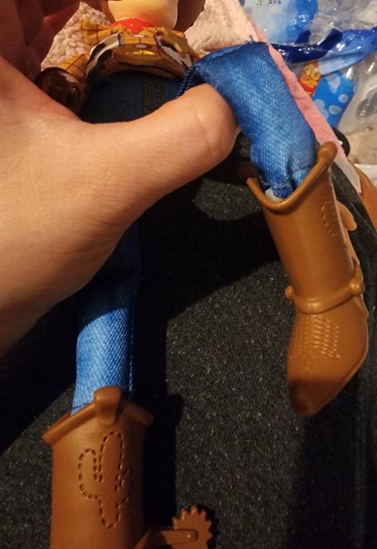 I love that this Woody doll looks and sounds exactly like the movie. The attention to detail is very good and my kids especially like that it has “Andy” written on the bottom of his boot. My boys have been playing with him daily and really like to hear the phrases - his voice is so cute. Woody was very popular on Christmas when all the kids wanted to play with him. Woody brings joy, smiles and laughter to all children who engage with him. His body is made up of cloth and his head and hands are of a hard plastic. His little cowboy hat is detachable and he also has a cute little gun holster on his belt with no gun and of course he has his Sheriff Badge Displaying proudly. I wish the pull string was a little longer - it does seem a little fragile and I don’t know how long it will last but for now it’s still going strong. This Woody Doll really captures the essence of the movies and is a super cute toy for any Toy Story lover