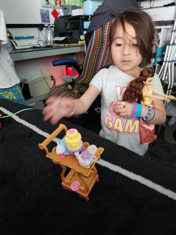 Our daughter loves Belle’s Tea Time Cart! The many accessories, including Mrs. Potts snd Chip, give my daughter plenty of options for imaginative play. The size of this doll is perfect as it matched up well with other dolls. Our daughter has played almost every day with this since she received it. For Disney Princess fans, this toy is a must have!