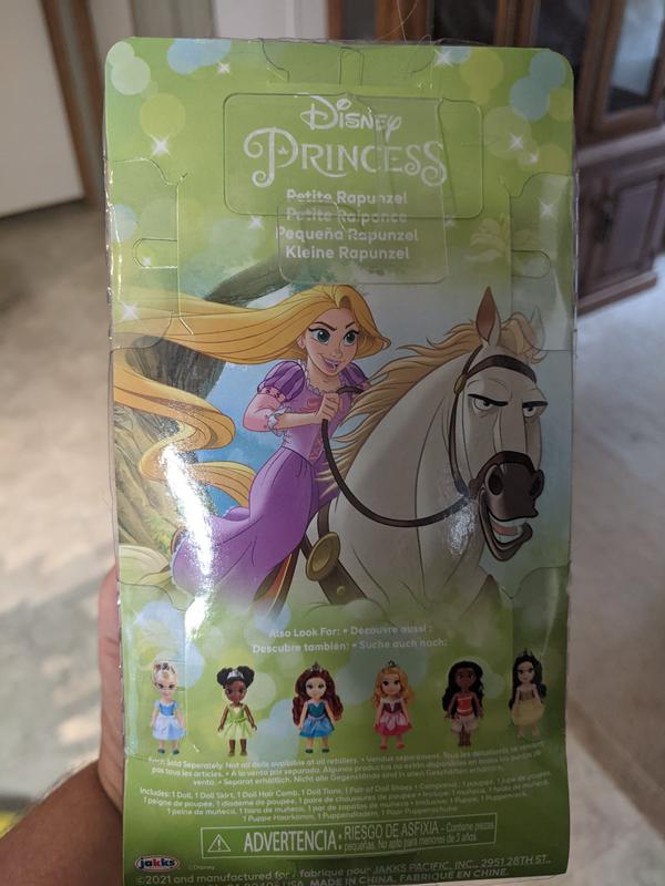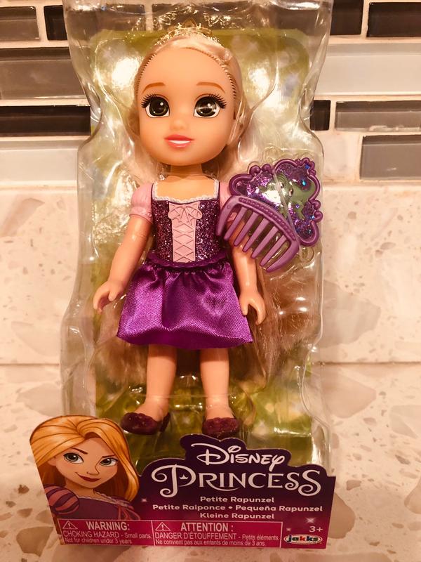 My daughter was really excited to get this Rapunzel doll. Indeed, as the title says, she's petite, probably a little over 6 inches, not a full sized doll, so perfect for travel and regular play. In fact, we took it on a trip and it kept her busy during the ride. Good quality, fun toy.
