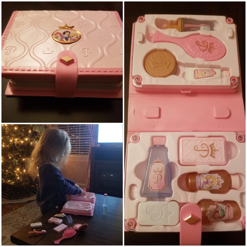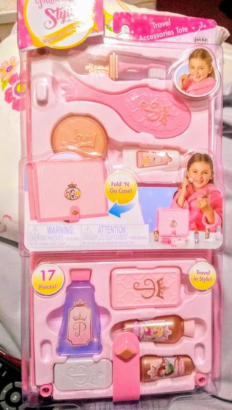 Disney Princess Style Collection Travel Accessories Tote is amazing and keeps my child out off my vanity, so no more mess with my makeup! Keep in mind this is all plastic and it’s intended for pretend play!