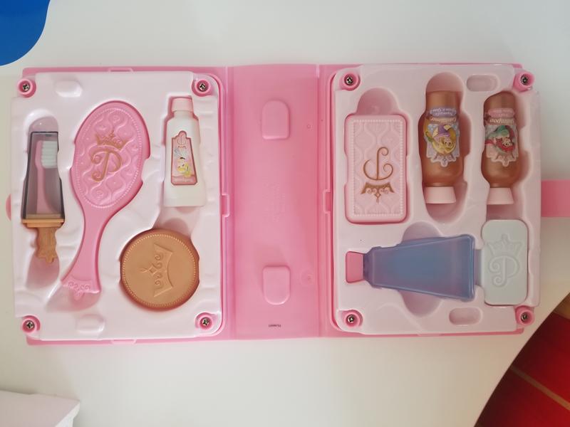 I got this Disney set for my 3 year old for Christmas, and it was a HUGE hit! So much so that she didn't even open another present for at least an hour, because she was too busy playing with her "makeup" This little set is super adorable, and lets her imagination run wild, as she does her own makeup, or her sisters, or her dolls. I love that everything has a little spot, so you can always tell when something is missing. The tops of the bottles do come off, so I would pay close attention when your child is playing, so nobody puts anythig in their mouth, but all in all, I am so pleased with this set. Anything that can hold my daughters attention for as long as this set does, gets an A+ from me!