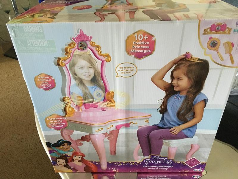 My daughter was in need of a more updated vanity and loves this one.. she has a whole closet full of dress up clothes so this holds almost all of the accessories very well. She also really enjoys the rings that come with it, and the songs it sings. This is a great addition to any little princesses room!