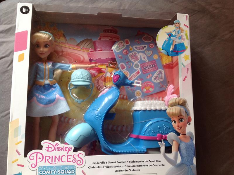 Disney Princess Comfy Squad Cinderella's Sweet Scooter is a cute fun doll set to have. I love that Cinderella comes in a modern outfit and helmet! The scooter has storage for the helmet inside the seat. You can set Cinderella on the scooter to go on your next adventure! You can customize the scooter with the stickers provided. This set is very well made and very sturdy. I can't wait to get other sets that are available for my girls!