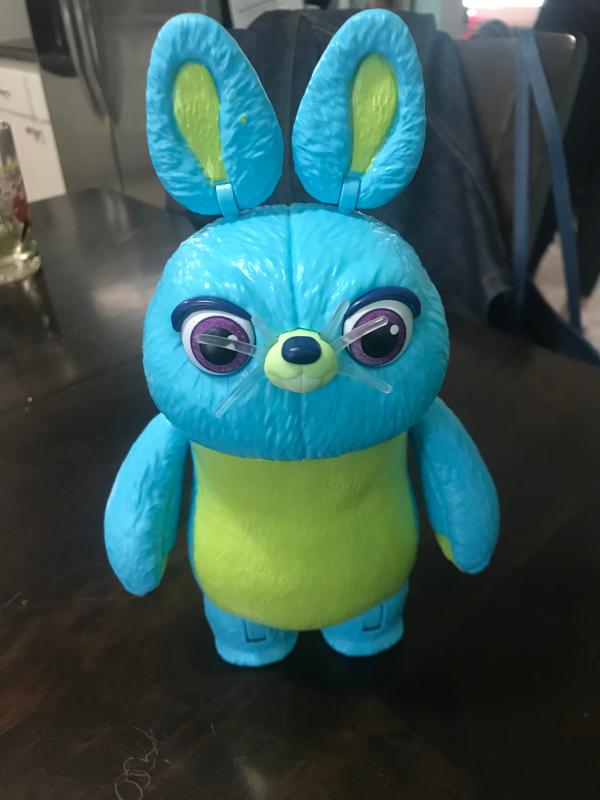 I got this bunny for my son. He’s 3 and obsessed with anything toy story. He loves it, has taken it everywhere with him for over a week. Once I showed him he could move the arms and legs and ears around he thought it was even cooler. I love watching his imagination work with toys. It’s super cute, light weight, entertaining for my toddler.