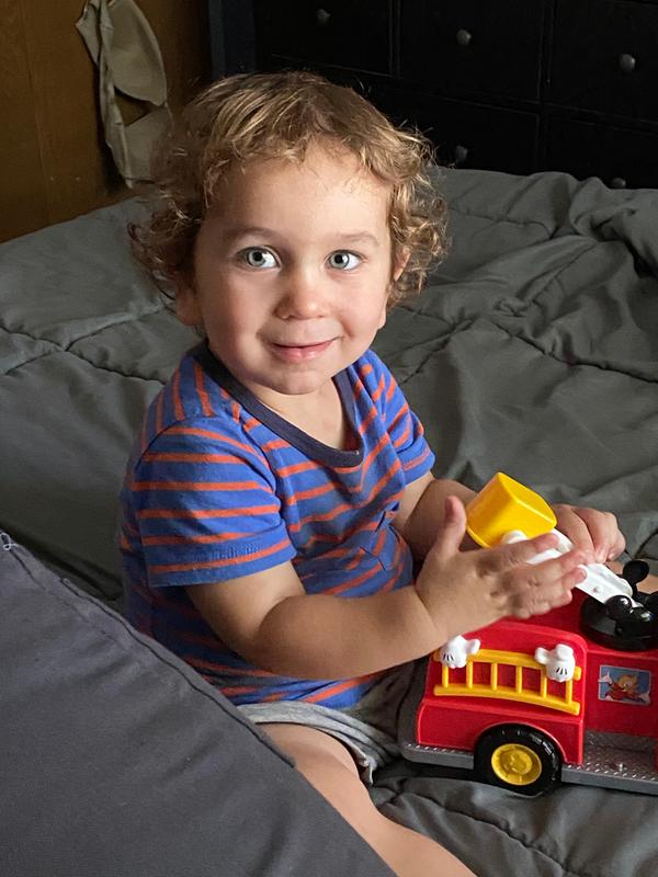 I needed a birthday gift for a sweet boy turning 2. This fire engine with Micky and Pluto fit the bill. Colorful, light weight, with bells and whistles, I knew the little boy would love this! And he did.