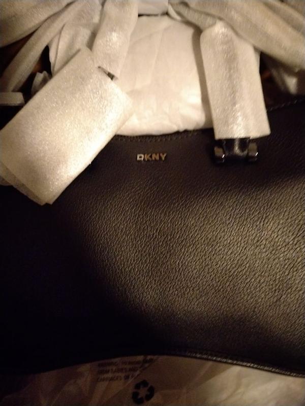 This leather DKNY purse was perfect size and the leather is great I love the smoked chain accent