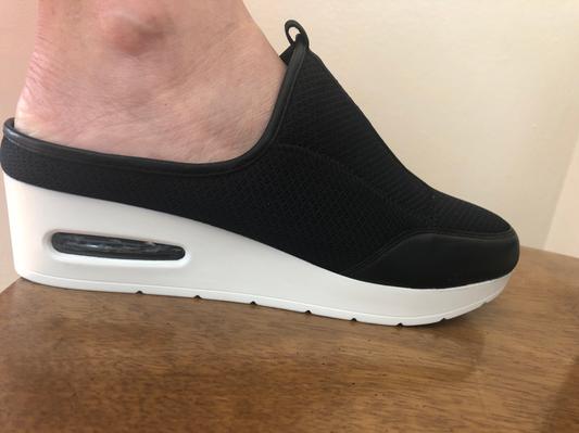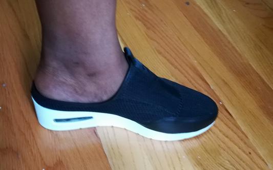 I was excited to receive these shoes because I thought they would be great for just hanging around the house or quick trips around town. Overall, they are attractive and stylish but for me they did not work out. The upper part of the shoe is made with a breathable material that fits snugly at the top of the foot. It has a slight wedge in the back giving some lift which I really like. I ordered them in a size 9. The length was just right but for me but the width was very narrow. I don't have a particularly wide foot but these were way to tight across the top and even after wearing them for a few days, they did not stretch much. Also, there is virtually no arch support. Bottom line, if you don't need good arch support and your foot runs narrow, this shoe is cute might be just right for you.