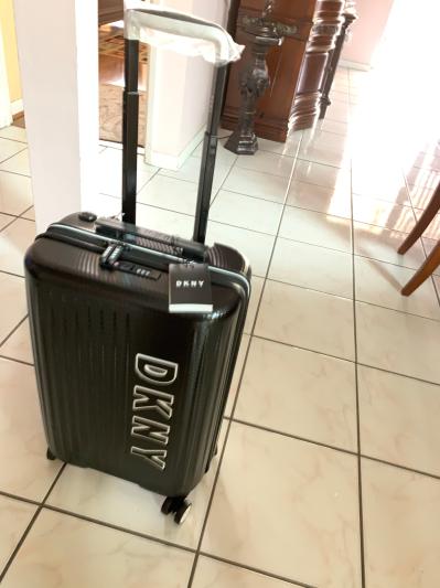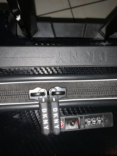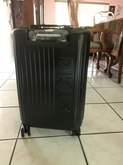 The carry on is amazing! Sturdy 4 wheel, with built in lock and usb port. I love this DKNY carry on! The design is nice and has great number of pouches inside plus an extra clear zip on bag for make items. I recommend this item!