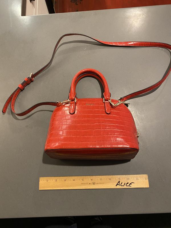 I had been eyeing this bag for awhile in the brown color. I was super excited when my boyfriend gifted it to me for Christmas. I have been using the bag since January and while I still love it and find that it fits my needs with the right amount of space not to big not to small I can fit a Phone, compact and small wallet etc. My only issue with this bag is the vinyl material is starting to pull away from the lower buckle. I’m never hard on my bags and just wish this bag would of held up longer than 6 months of normal use especially for the price.