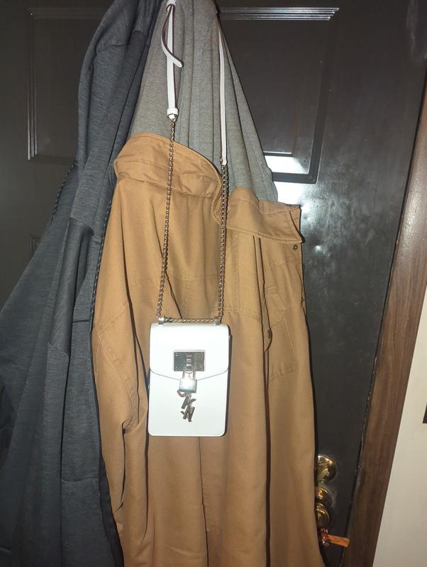 i got this bag in white and it is so perfect for summer. i am able to fill several lopgloss tubes, a phone, and a small wallet. very firm leather and you can extend the strap long or short. the strap is part chain and part leather.