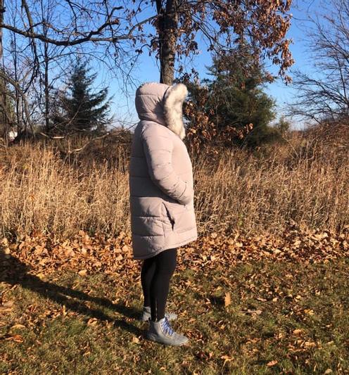 This is a beautiful jacket! Wow, it is really warmer than I thought it would be. The hood is really large, even after I removed the faux fur. I will have to wait for temps. to get back into the 30's or below. It's to warm to wear another time.