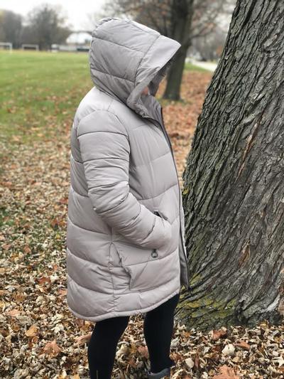 I saw this coat and loved it, but it's not for me. I am a "pear shape", small on top big on the bottom. This coat is straight so on me I had a lot of room on top yet it hugged my rear. I'm not a heavy woman and this just made me look round. If you have slimmer thighs and rear this coat would look nice on you. It is warm though, and the hood is big, it just didn't work for me.