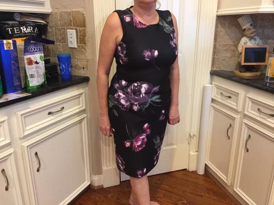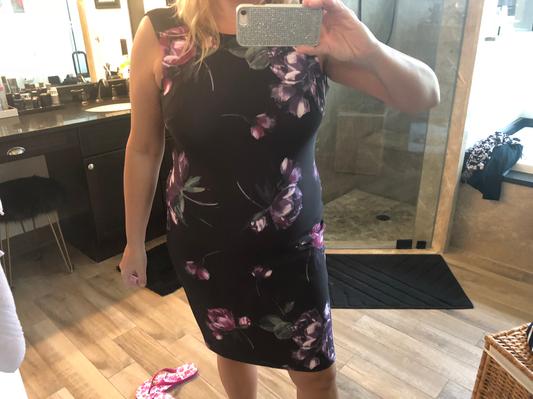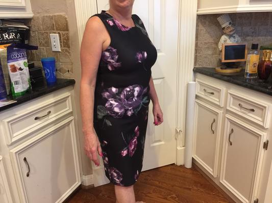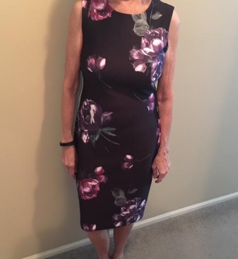 Love this sheath style dress. Comfortable, stretchy fabric and beautiful floral design adds a feminine touch. Can be worn to a dressy event or to work with a blazer . Doesn’t wrinkle so is perfect to pack for a trip and because of the variety of colors can be worn year round. This is the perfect go to dress!