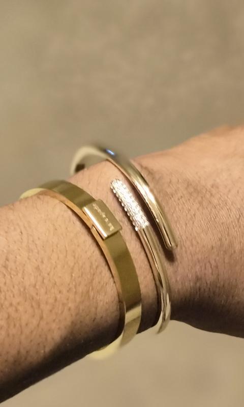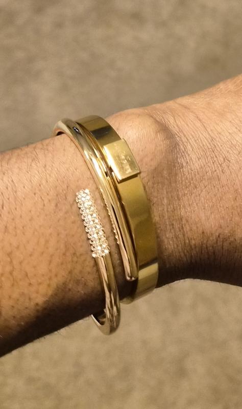 This bracelet is the ish! Although I plan to mix it up with other bracelets, it is a statement all on its on. I have small wrists so I cant speak on the fit, I can say for wrists too much bigger than mine, it may be a challenge getting on. It's secure once it is on and has a simple but "you noticed" type look. The stones don't look cheap and add a nice touch. It pairs well with a dress down look or a dressed up look....and I wear it with both. I can say this will be a staple in my daily OOTD!