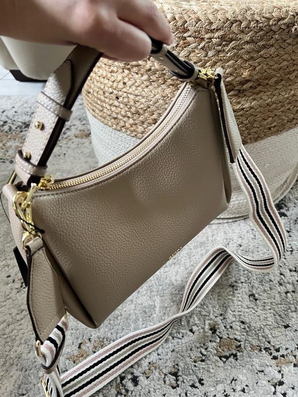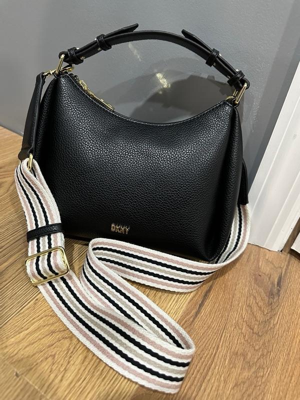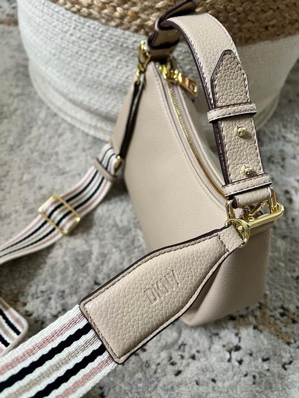 The DKNY Hailey Top Zip Crossbody is a chic and functional accessory perfect for everyday use. Its top zip closure provides secure storage, ensuring that your belongings are safe as you go about your day. The crossbody design offers the convenience of hands-free carrying, making it ideal for busy lifestyles. DKNY has thoughtfully crafted the Hailey TZ Crossbody with their signature attention to detail, incorporating logo hardware and premium materials that speak to both its durability and stylish appeal. The bag is just the right size to fit essentials such as a wallet, phone, keys, and other daily necessities, striking a balance between compactness and capacity. Versatility is one of the standout features of the Hailey TZ Crossbody. It seamlessly transitions from work to casual outings, making it a reliable choice for a variety of occasions. Whether you're heading to the office, running errands, or enjoying a day out, this handbag adds a touch of sophistication to any outfit. Overall, the DKNY Hailey Top Zip Crossbody is a smart and stylish investment for those seeking a practical yet fashionable accessory.