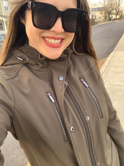 I loved this from the minute I opened the box. It is beautiful and gives a nice shape unlike most jackets. It fits true to size and is very, very flattering. I am 5'2" and it lands about 2" above the knee. It is perfect to walk around in NYC, even in the rain. The color is beautiful (I got the green color which is olive green). The outside is silky soft and it is plenty warm without being smothering. I highly recommend this jacket!