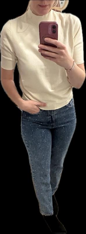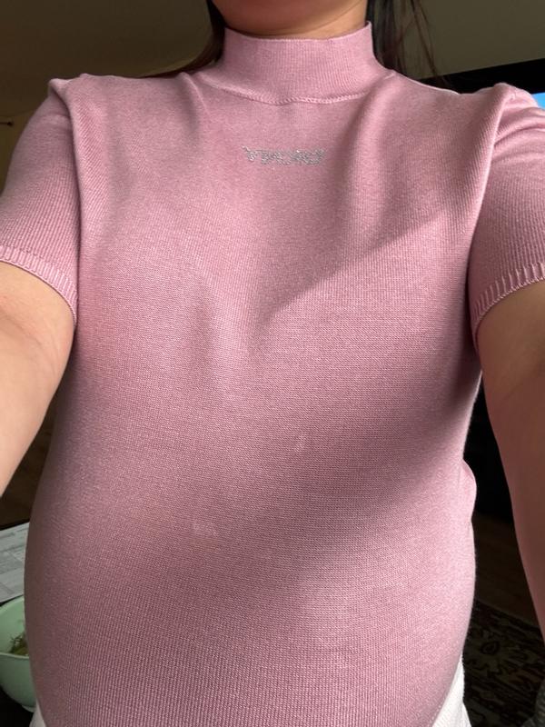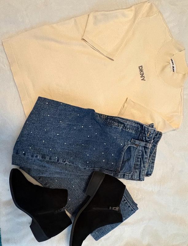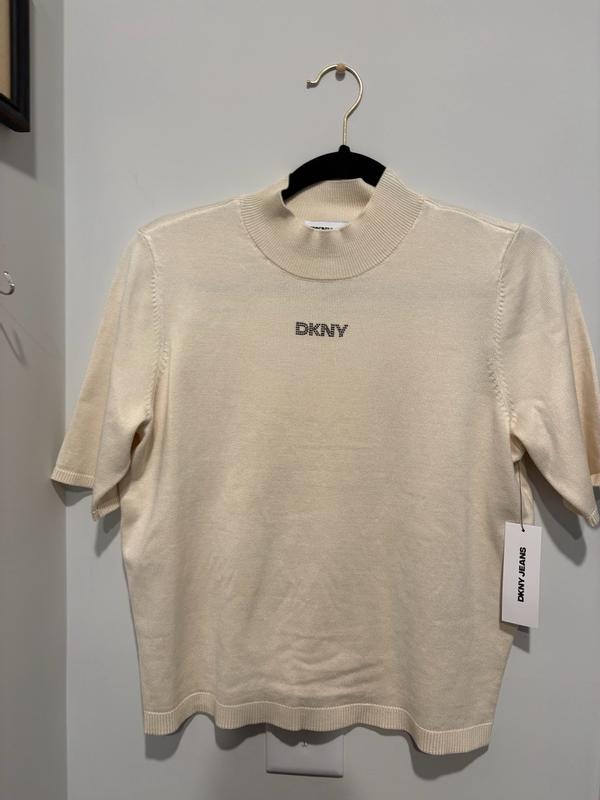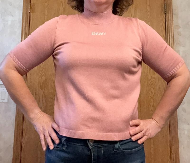 This DKNY Short Sleeve Hot Fix Logo Mock Neck Sweater is an absolute gem! The fabric is buttery smooth and incredibly soft against the skin, with a flattering mock neck and subtle sparkle from the hot-fix logo that elevates any look. I ordered a petite medium, and at 5’11”, it fit perfectly—definitely not true to size, so consider sizing down if you’re tall. It’s versatile for business casual or a dinner out; I paired it with sparkle jeans and black boots for a fun, polished work outfit that got tons of compliments. Highly recommend! I have not tried washing it yet but am hopeful that it will be durable since the fabric feels like such high quality.