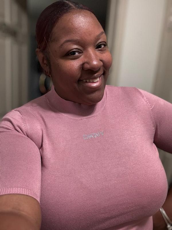 The DKNY Short Sleeve Hotfix Logo Mock Neck Sweater is impressively soft with a smooth, refined texture. It’s surprisingly warm for a short-sleeve sweater, and the mock neck adds a nice cozy touch. The durability is excellent—no pilling or loose embellishments even after several washes. Best of all, there’s virtually no shrinkage when cared for properly. Stylish, comfortable, and dependable!