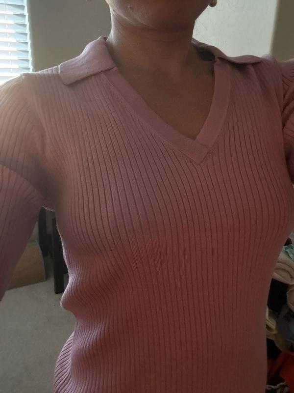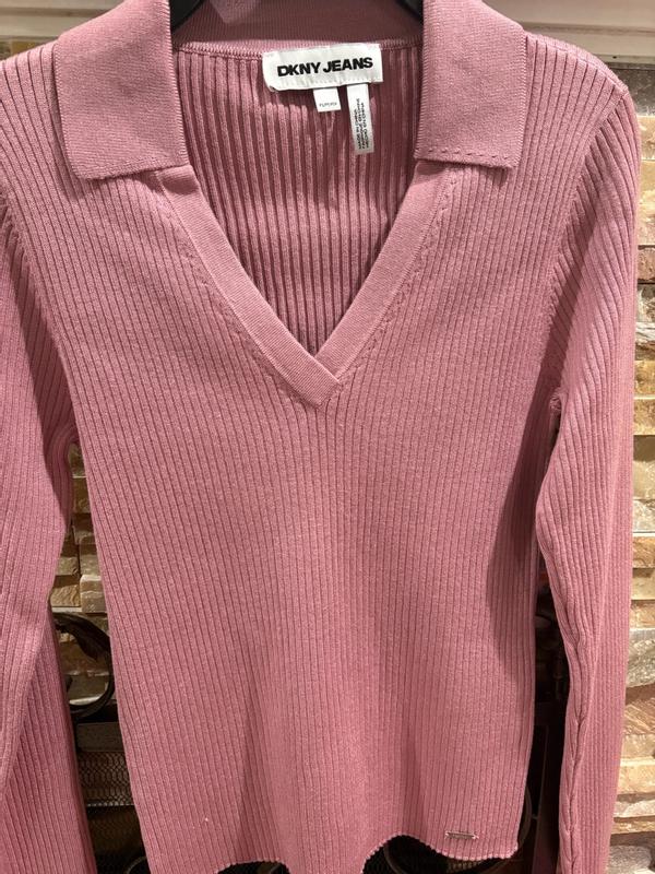 I received DKNY long sleeve rib polo sweater This sweater is really soft and fit me perfectly really comfortable and stylish and the color is so pretty