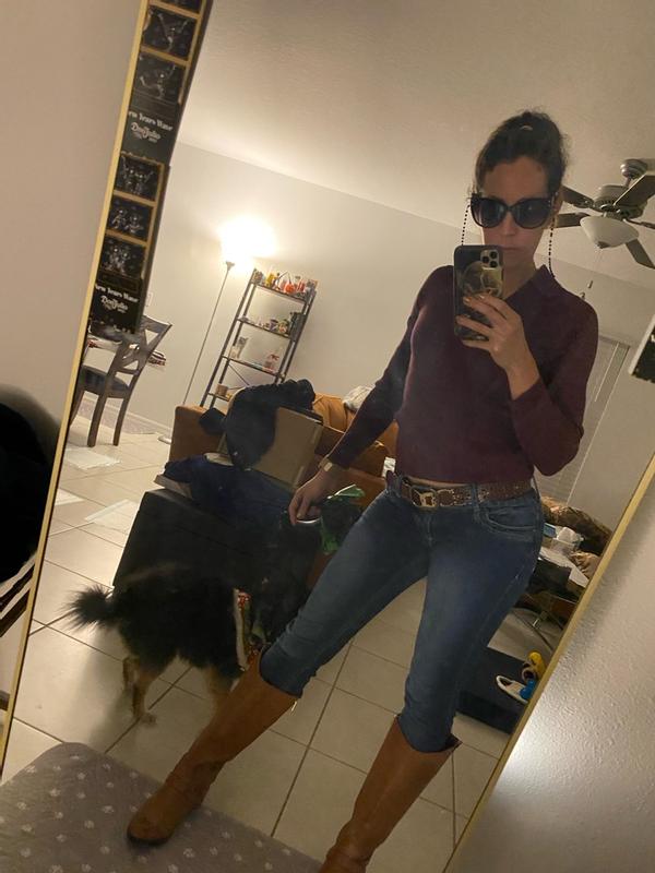 This long sleeve rib polo sweater is incredibly soft and comfortable! The ribbed fabric has a smooth, cozy feel that’s breathable yet warm, making it perfect for all-day wear. It drapes beautifully without feeling tight or restrictive, and the stretch adds to the overall comfort. What really makes this sweater a standout is it’s versatility. You can easily dress it up with dress slacks for a polished look, or keep it casual with leggings or jeans for everyday wear. Today, I paired it with bootcut yoga pants and I’m loving it! The classic polo neckline adds just the right touch of structure, making it effortless to style for work, errands, a casual night out, or even just lounging around the house. A great staple piece that balances comfort and style perfectly, in my opinion! I will say, I would size up just one size to be sure that when lifting your arms or bending over, you’re covered.