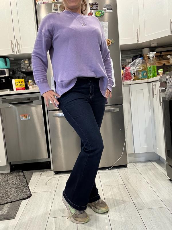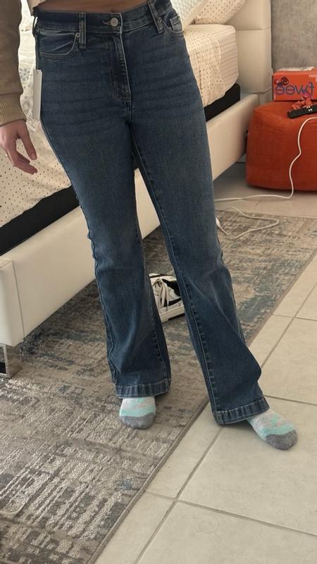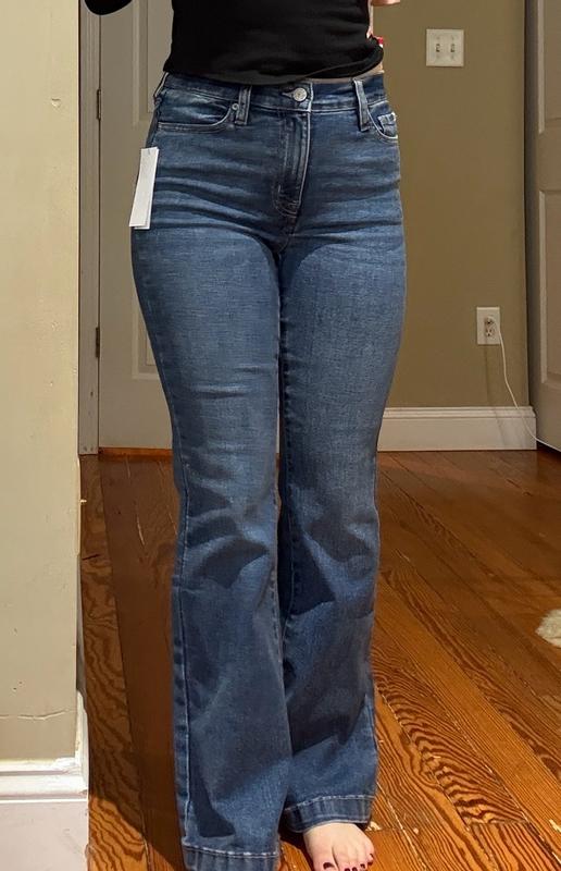These jeans are so cute and perfectly fit my small 4”11 frame. They are a nice thick denim while also having adequate stretch and softness to them! These are perfect for fall weather and the flare is the perfect width.