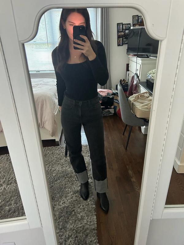 This pair of DKNY High-Rise Classic Straight jeans in the “anchor” color, have fit me very well since day one. I truly enjoy how comfortable and stretchy the high rise design is, which makes my stomach feel comfortable and not tightened. The straight leg design is chic and clean, and I also like the raw edge cuff. These jeans are quite versatile, as one could dress them up or dress them down depending on the occasion. They have just the right amount of stretch that I feel comfortable in. 10/10 top-notch pair of jeans!