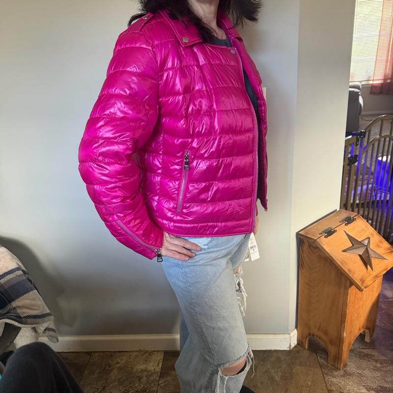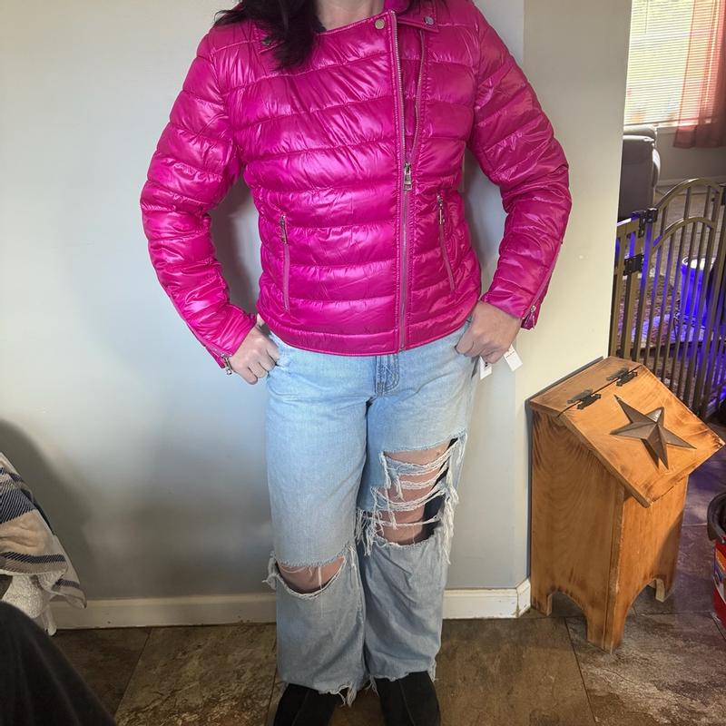 Honestly disappointed in this jacket. The zipper is super rough and sticks almost every time I try to zip it up. The material feels really thin and flimsy, not what I expected from DKNY. It looks cute in pink, but the quality doesn’t live up to the price at all. Definitely not worth it.