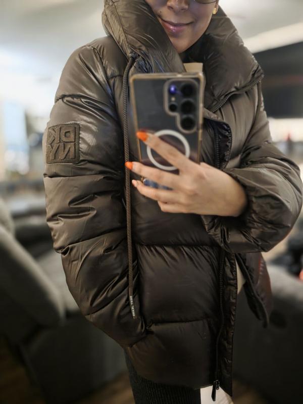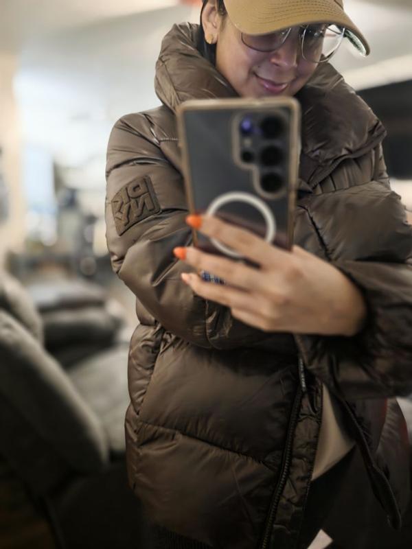 LOVE this winter coat. I got the brown and it’s a beautiful shiny chocolate shade. I love pairing it with my espresso Alo leggings for a sporty look. I love that it has pockets, very comfortable, and runs true to size. This jacket is very WARM! I love it and can’t wait to wear it all winter long.