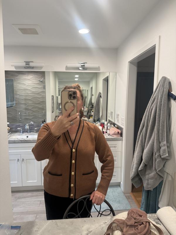Women's Long Sleeve Tipped V-Neck Cardigan Sweater