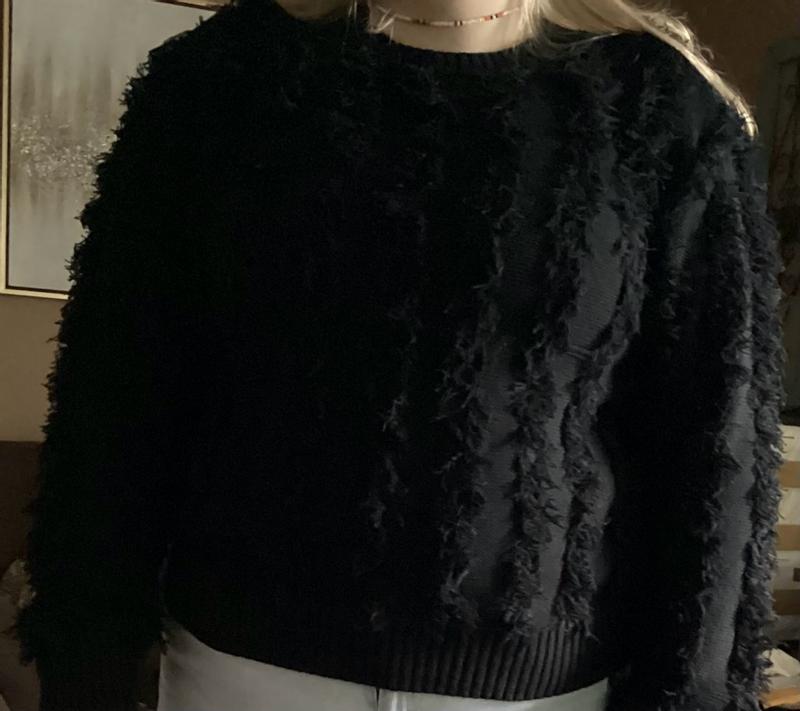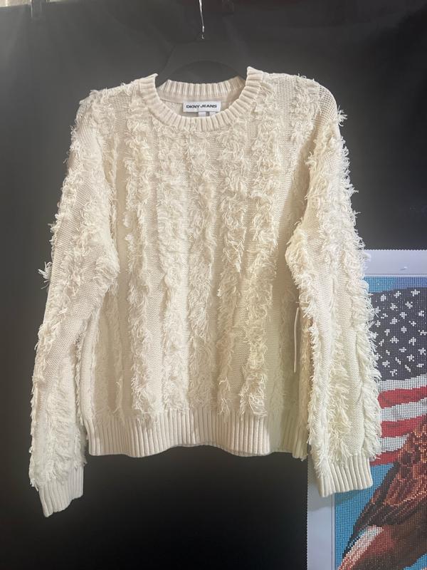 (I received this product for free in exchange from my honest review on it) DKNY long sleeve crewneck with fringe stitching. I received the black one. It felt and looked great on me was very comfortable and warm. It was great for a cozy night out. The quality of the sweater was great and the fringes it went very well with a nice pair of jeans. I had many compliments on it.
