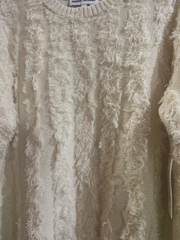 I recently received a white DKNY sweater with fringe stitching, and I’m really impressed. The quality is excellent—thick enough to feel warm and cozy, but still soft and comfortable for everyday wear. The fringe detailing adds a subtle stylish touch without being too much. I also love the fit: it has a clean, flattering form that drapes nicely and keeps its shape throughout the day. Overall, it’s a great combination of warmth, quality, and modern style. Highly recommend!