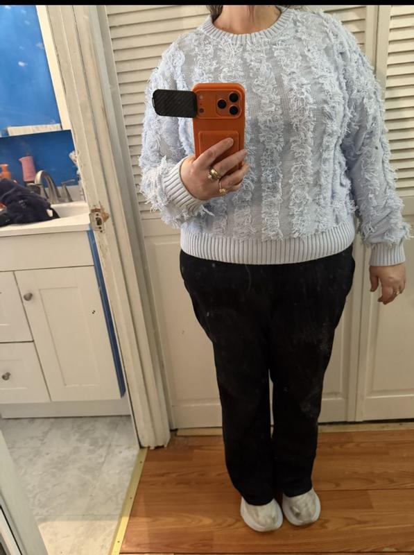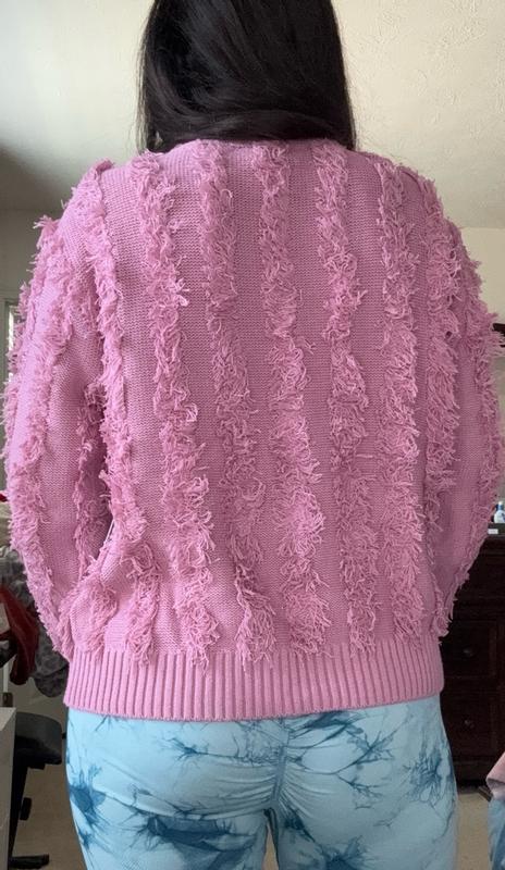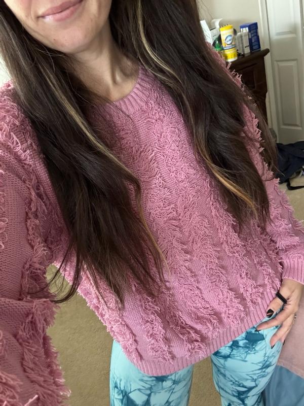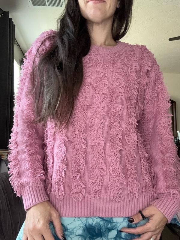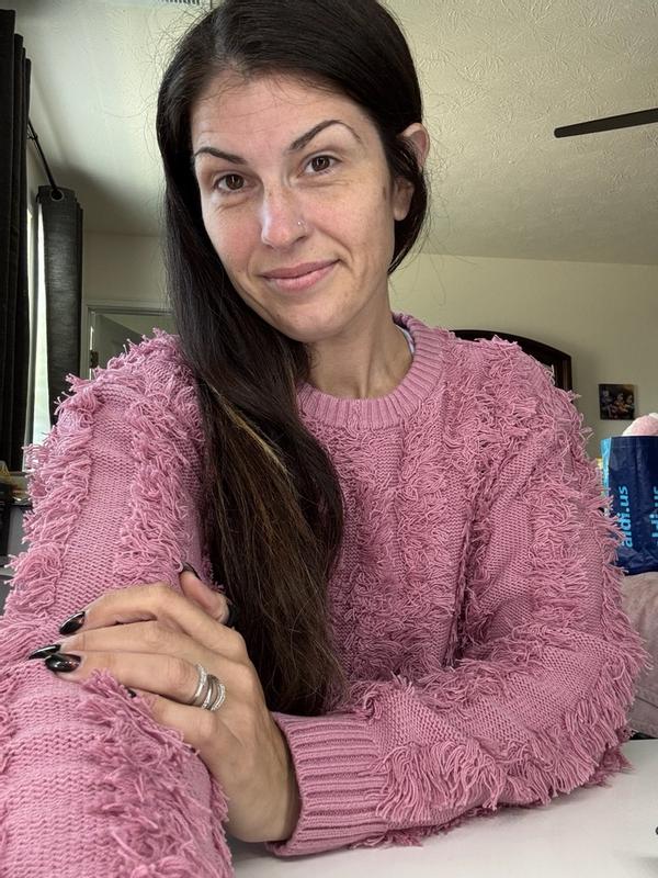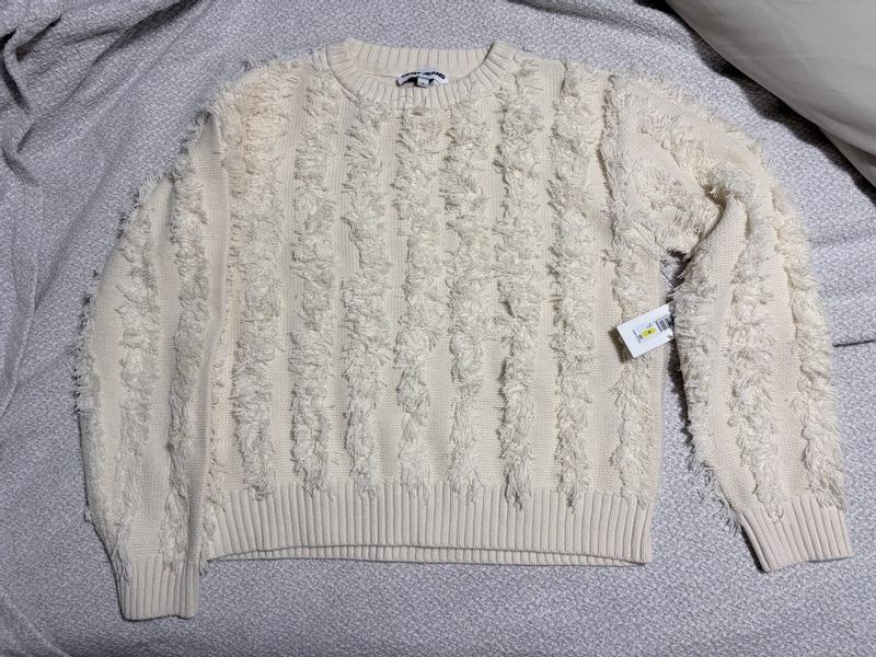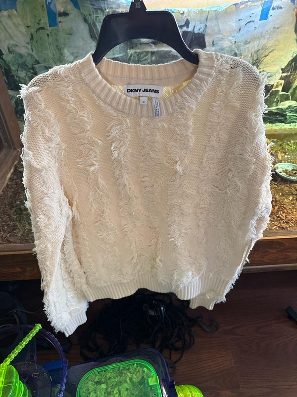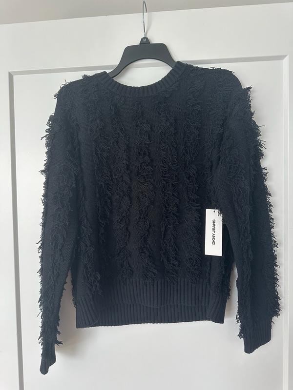 This DKNY Long Sleeve Crew Neck with Fringe Stitching is incredibly comfortable and has a perfect fit. It feels cozy yet stylish—warm enough for the cold days ahead while still lightweight enough to layer easily. The fringe stitching adds a subtle textured touch that makes it stand out from a basic sweater.
