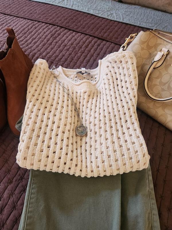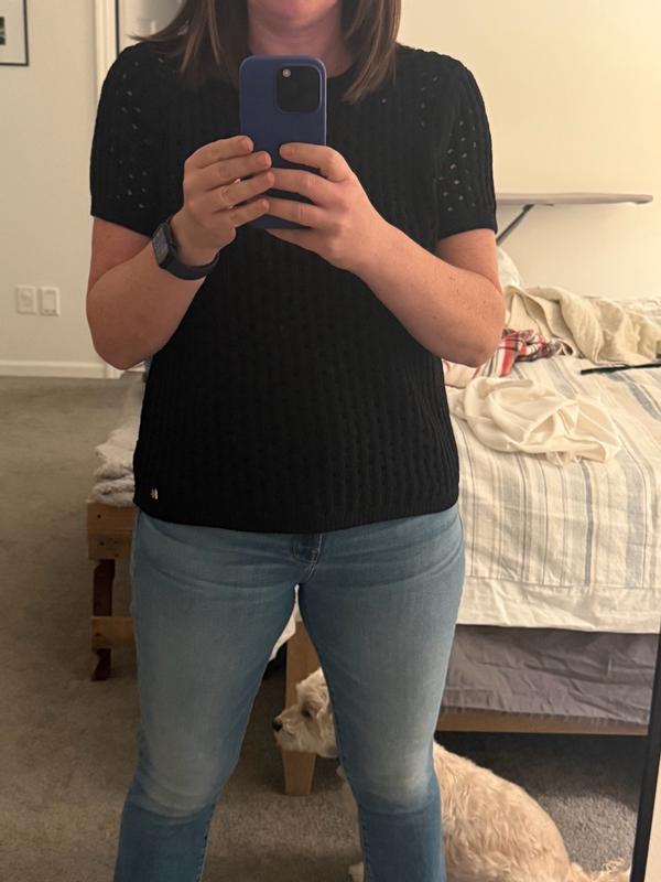 Women's Open Stitch Crewneck Short-Sleeve Sweater