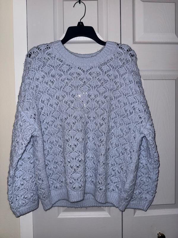 This sweater is so cozy! It’s soft and doesn’t irritate my skin. The details make it a versatile option that you can dress up or down. I got the sweater in a medium and I feel that it is true to size. It fits perfectly! My only concern is that I hope my jewelry doesn’t get snagged in it. Otherwise, it appears to be very durable. I will be getting this in other colors!