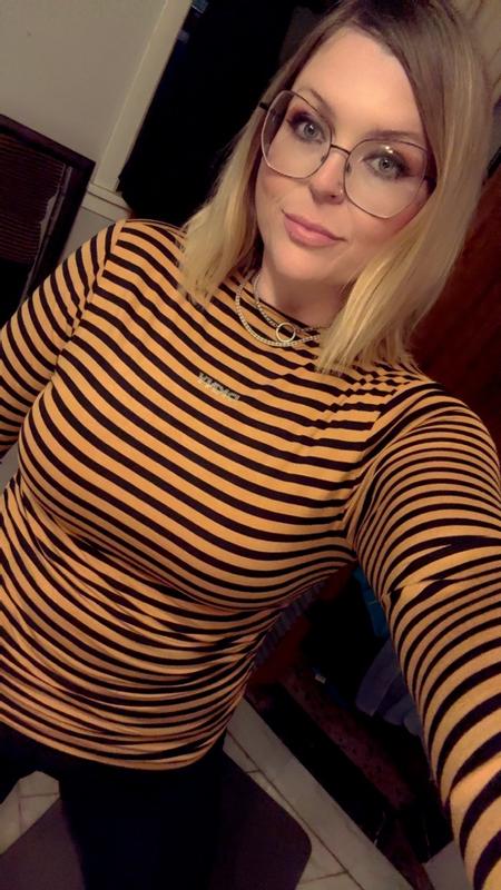 this is one of the softest shirts I swear Love it has a little strech and fits perfectly! It has the little scrunch on the sides making it so cute Sizing is perfect