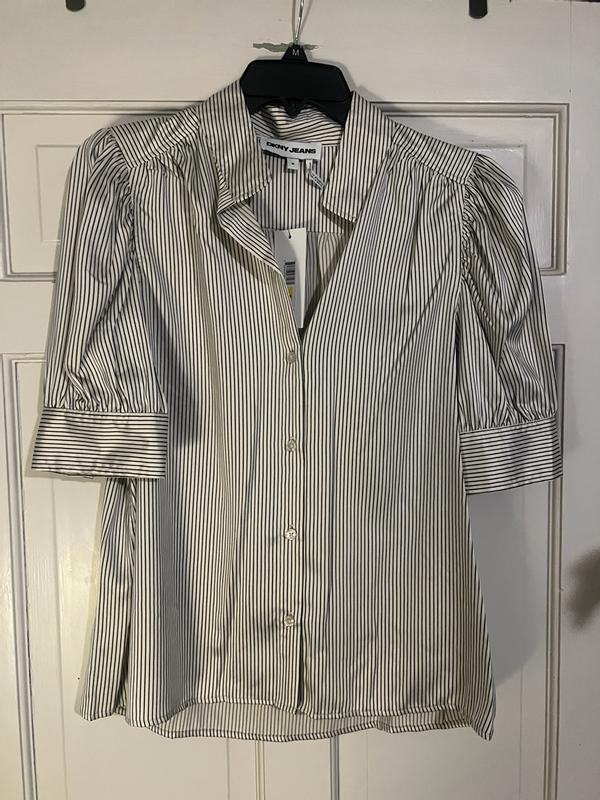 Absolutely love the design, fabric, and the style. It is so comfortable and beautifully made. The only problem I have is with the arm buttons- one of them are too tight so I would need to actually size up in this shirt for the arms. I would highly recommend DKNY clothing!