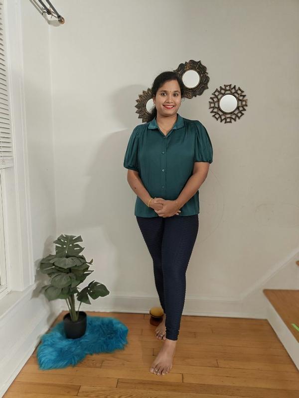 Absolutely love this puff sleeve shirt. The sleeves have a perfect touch of feminine flair while still feeling modern and wearable. The fabric feels soft and comfortable. It’s easy to dress up with a skirt or keep casual with jeans. Definitely a staple that elevates any outfit!