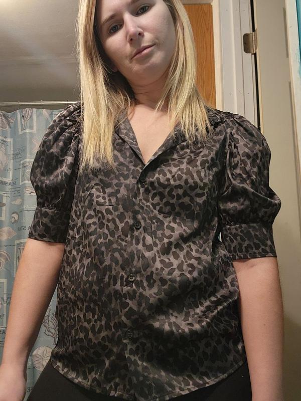I loved the style and look of this shirt. The leopard print pattern is adorable. I was a tiny bit disappointed in how tight the cap sleeves were and I wouldn't go out of my way to purchase clothing with this material. The shirt did look adorable! I live in Florida and it's perfectly lightweight, so that was a benefit of the fabric. The shirt is well made, I like the little stitched details on the shirt, like the collar.