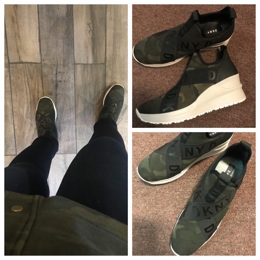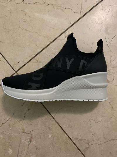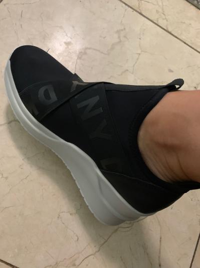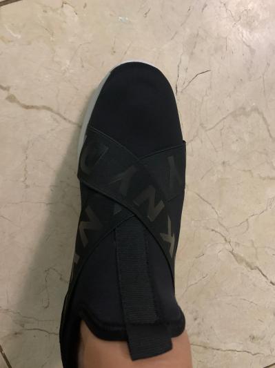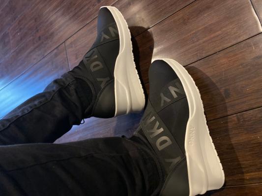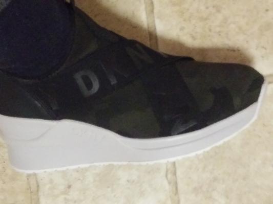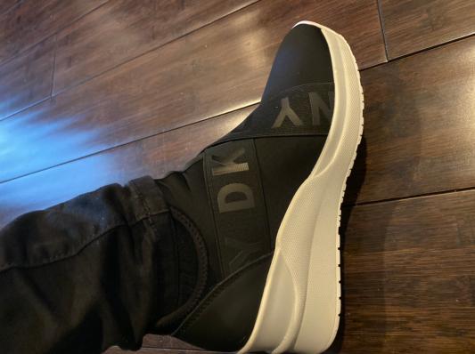 I know, it is very difficult at first to put on, until you get the knack of putting it on by putting your fingers behind the back of your ankle and put it on or get a shoe ____ to assist you. I have been wearing this since it came a few days ago and it gets better. Right now, I'm wearing no stockings to keep my feet warm, because I don't need to, it is very warm. I love these shoes. I wore them all over new your city with my backpack, taking the trains and they never failed me. My toes were happy and I have bunions. Can you believe it? It is a very level platform and I am over 50. I am just saying. Thank you Macy's and DKNY. I will have this Leya Wedge Sneakers for a very long time. If I could give it 10 stars I would!