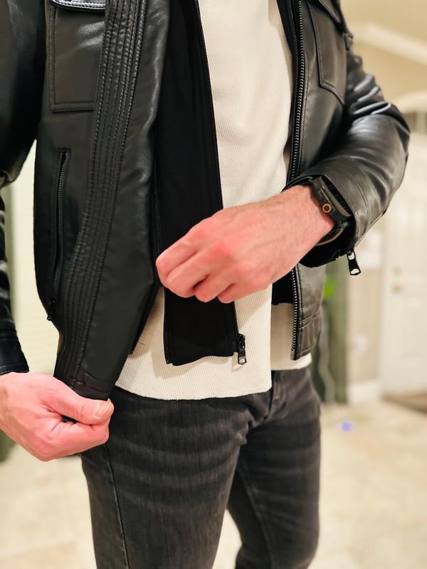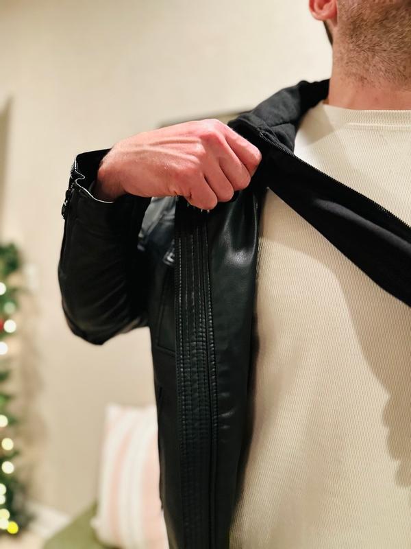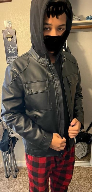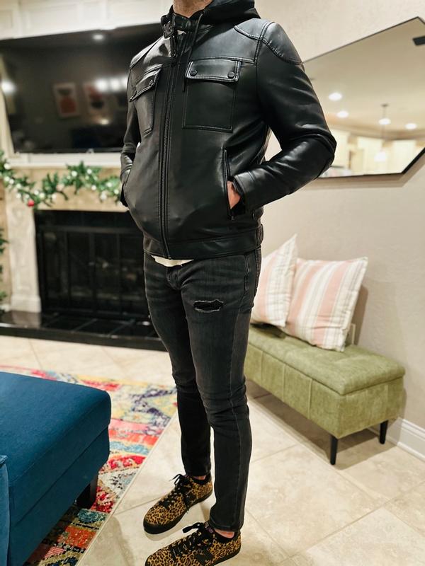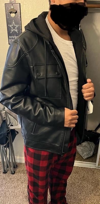 The DKNY Men’s Faux-Leather Removable Hood Moto Jacket is just what I needed to add to my wardrobe for casual outings. The fit is spot on with both the length and width being perfect for this style of jacket. It’s comfortable enough that I can wear it for long periods of time and much warmer than I anticipated with the inner material being quilted. My favorite feature is the removable hood which completely changes up the style and warmth level. The inner front cotton/polyester piece unzips from the bottom of the jacket all the way up to the hood so you are just left with the faux leather shell. This jacket is a great value and I recommend it to anyone looking for a versatile jacket that can easily go from day to night.