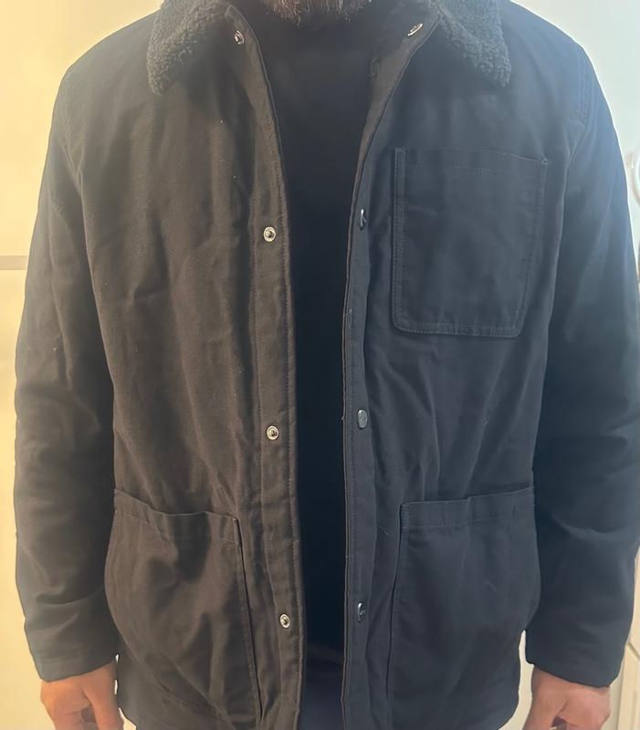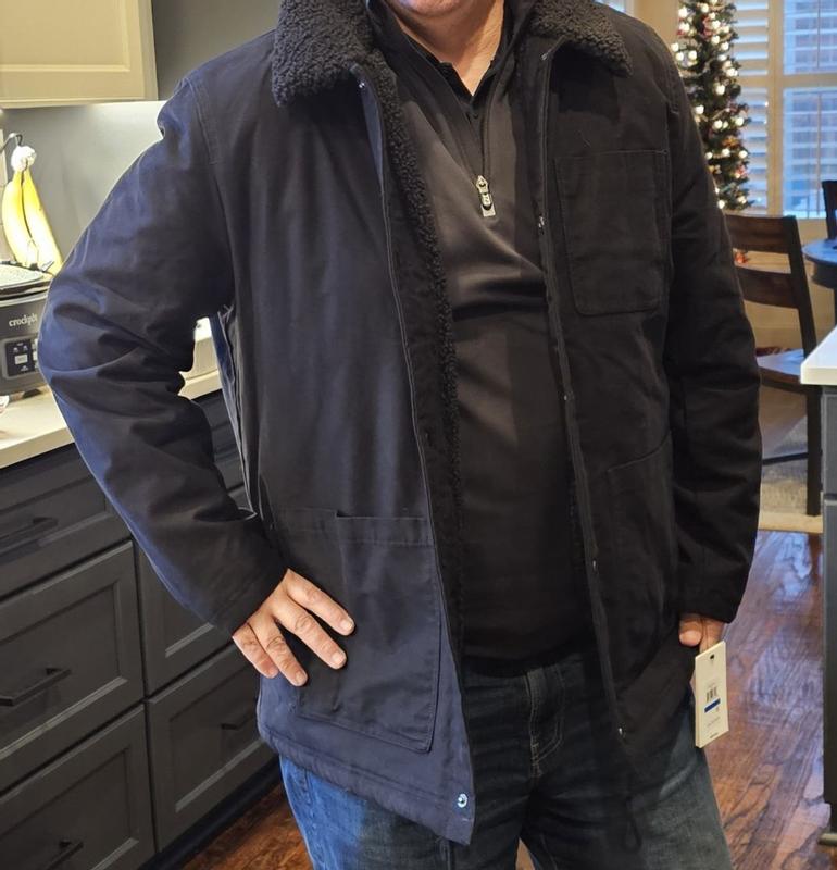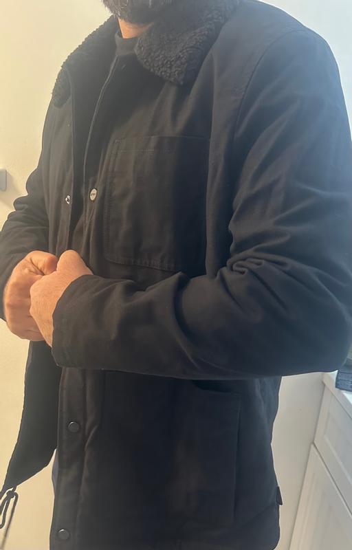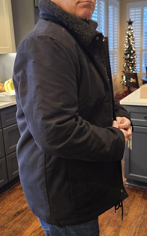 Just to get it out of the way: This is a nice coat! Comfortable, warm, easy to get in and out of…. Not much to quibble over at all! I ordered the “XL” size, and was surprised that this jacket was actually a bit wider than i expected - but for a winter coat, that’s not a bad thing. The length is perfect (I’m 6’1”), and as you can see in the photos it’s roomy enough that I could layer in a flannel or maybe even a hoodie underneath for extra protection on those really-cold days. I love that there are pockets, especially an inner pocket…. but I would like it more if the pockets could be closed. This style works for light-duty use, but I’d be hesitant to carry anything in those open pockets if I was wearing this for any kind of real work. The same can be said for the snaps that close the front: They open pretty easily. I suspect that the designer of this coat probably hasn’t spent a lot of time doing any kind of work in the snow; the front pops open without much of a fight when you pull the two sides apart. Aside from that, still a great winter coat! No hood, but as noted, it’s a little wider so you can easily get a hoodie or even another light jacket/windbreaker underneath if you want to. I’ve been wearing it almost every time I go out lately.