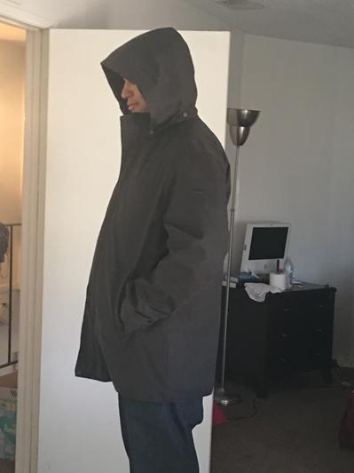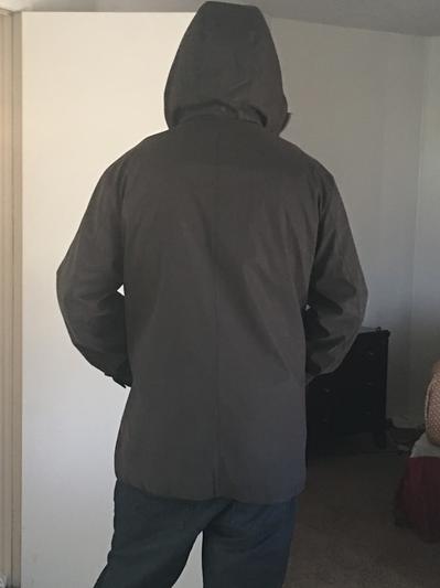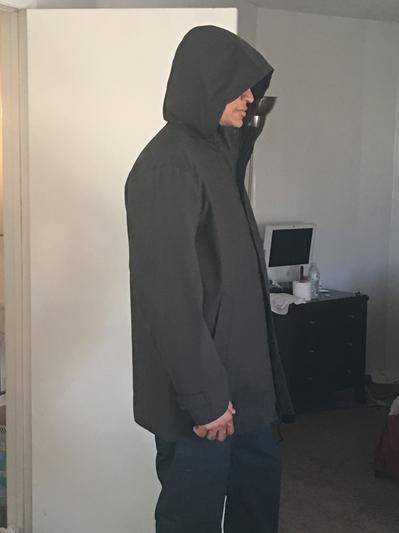 Our son is a school teacher, and he loves this jacket--perfect for wearing to school over khakis, or for more casual wear. The outer shell is a soft microfiber material that sheds the rain and it has a great quilted lining in both jacket and the detachable hood. The adjustable cuffs keep out the wind. It could use a two-way zipper, but is a great jacket nonetheless!.